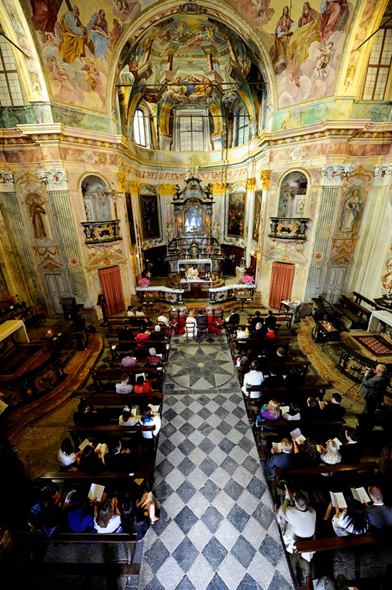 Andy and Pauline were married in the Madonna del Sasso church, a baroque church, called the Orta Balcony by many due to it’s stunning vista. A sanctuary on the edge of a high rock leap, looking North you can see the Alps of Ossola Valley up to Switzerland and on the South you can admire the valley towards Milan and the Ligurian Apennines…